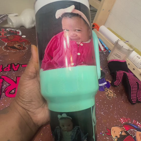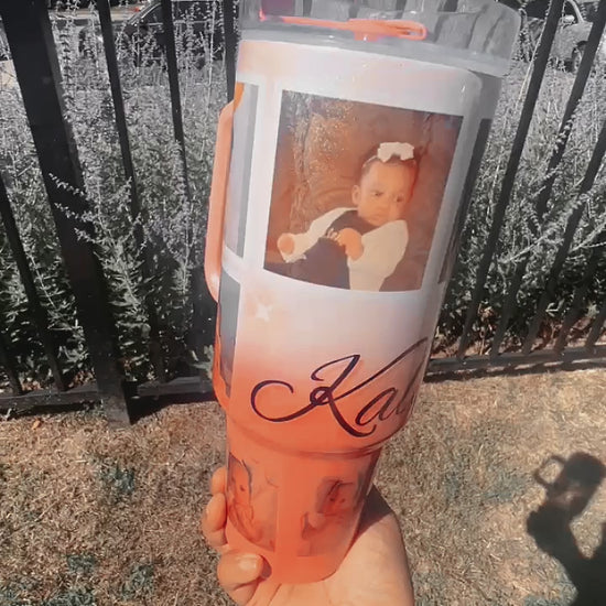 “Introducing the Breezee 40 oz Tumbler with Handle and Metal Straw! Made from stainless steel, This travel mug is the best you have ever seen. With double-wall insulation, it keeps your hots hot, and keeps you colds cold, and did I mention that it can hold and keep your Ice as Ice cubes for up to 12 hours—perfect for those hot summer days and night or that morning coffee fix. Now lets talk about this handle, which gives you that sturdy comfy grip. This tumbler can be customized how you want it with a variety of picture or designs, get it for yourself or give it as a gift for any occasion, comes in solid white (which can be transformed to any color, or a ombre effect ( pink, purple, mint, and more)