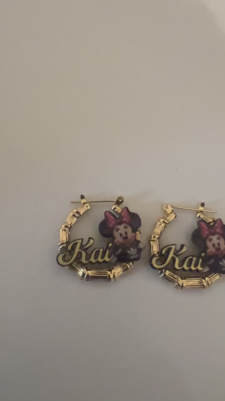 These custom character bamboo hooped earrings are thoughtfully designed for children aged 1 to 8 years. Crafted from lightweight bamboo, they offer a comfortable fit suited for young, sensitive ears. The customizable character detail adds a playful and personal touch, making them an ideal accessory that balances safety, style, and child-friendly materials.