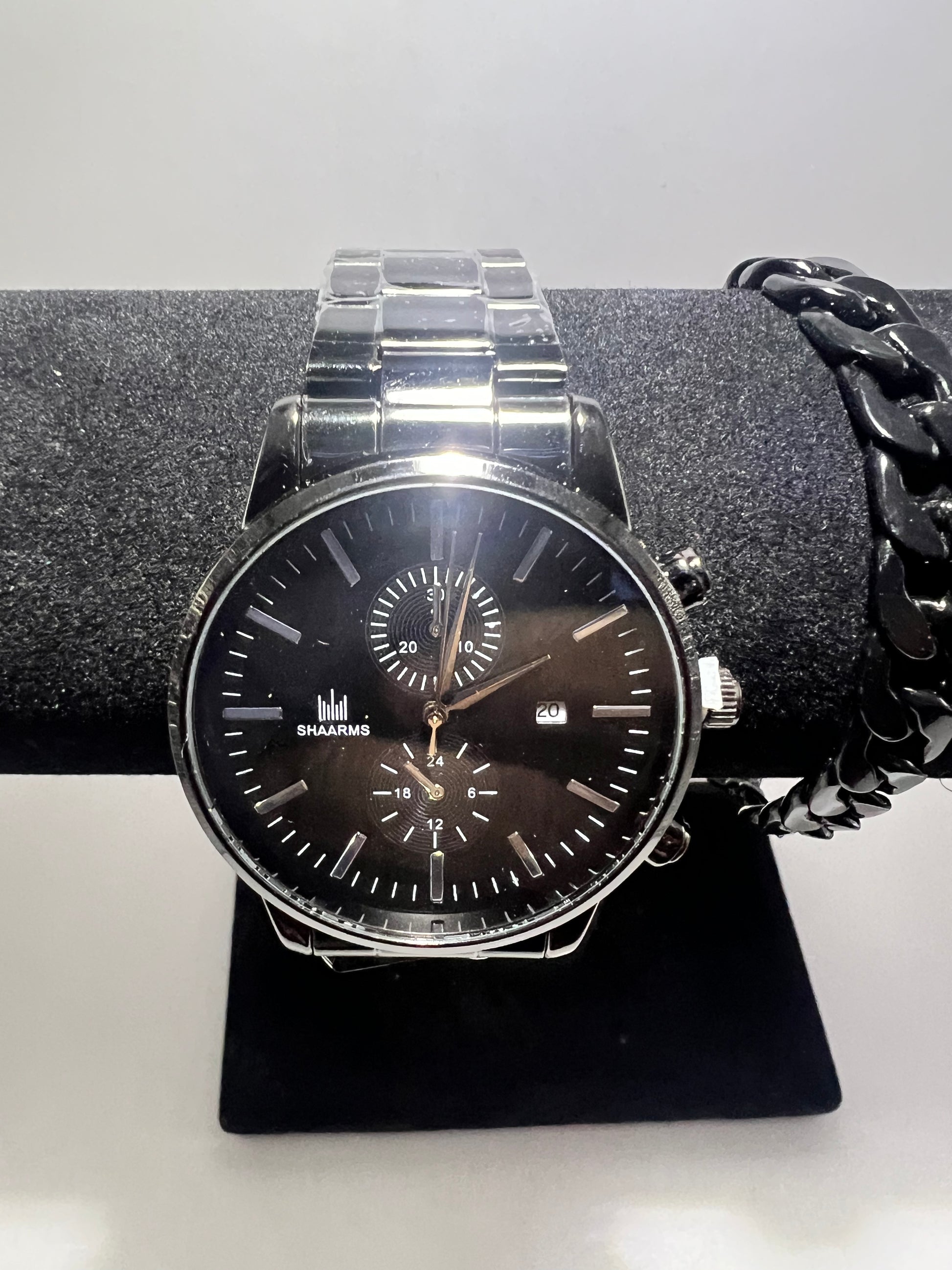 With stainless steel bracelet to match