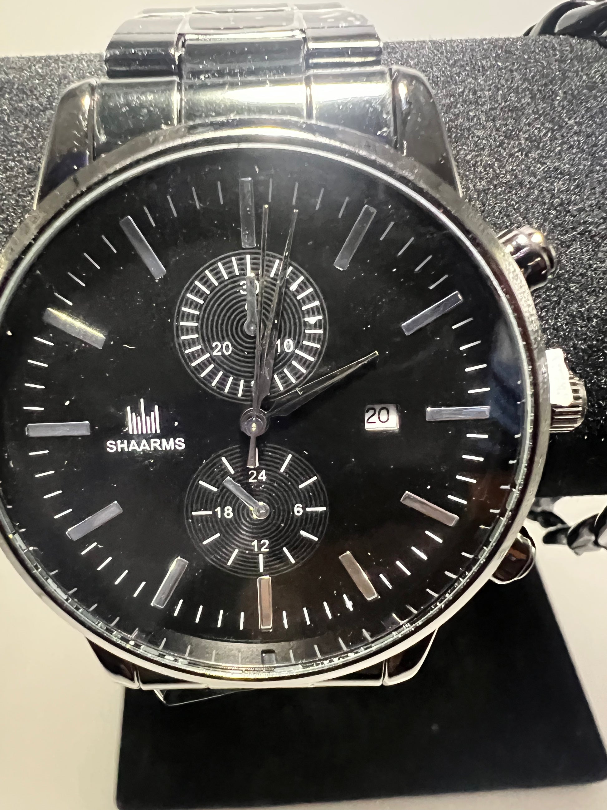 Men’s watch, Black stainless steel, Big Face silver & WHITE inside.