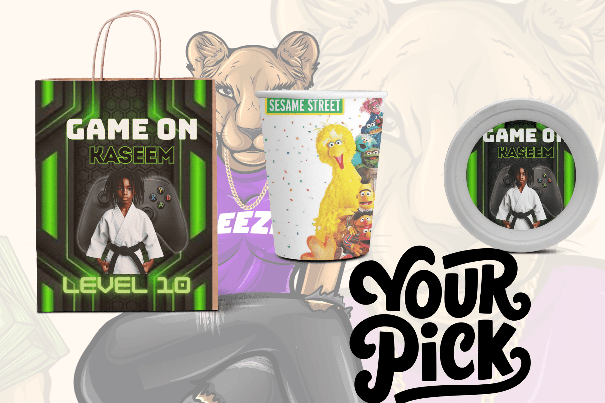 Indulge in our custom Party Favor Packages! Perfect for any event, our bundle includes assorted snacks with personalized images and themes. Suitable for a 1 year old's 1st birthday or a wedding reception. Add a unique touch to your special occasion with our customized packages. Each order includes 12 items, perfect for sharing and creating lasting memories. Add a touch of fun and excitement to your event with our snack options. Order now and make your party an unforgettable experience!